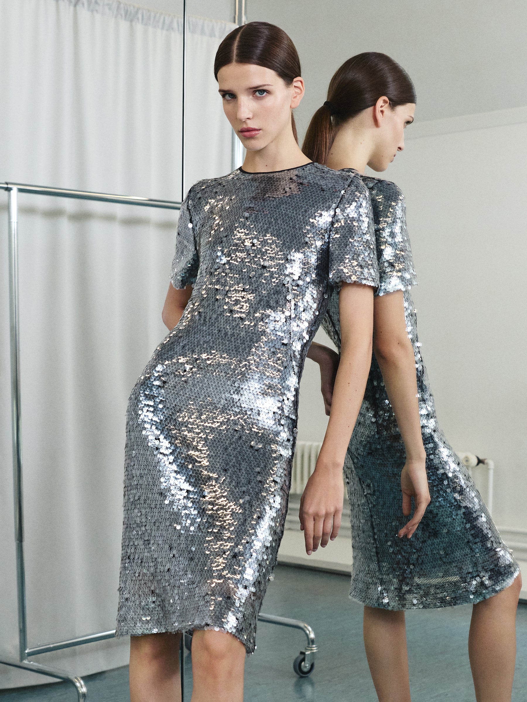 Leichter Tüll, mit Pailletten bestickt, schimmert bei jeder Bewegung. Ganz selbstverständlich – und doch unübersehbar.