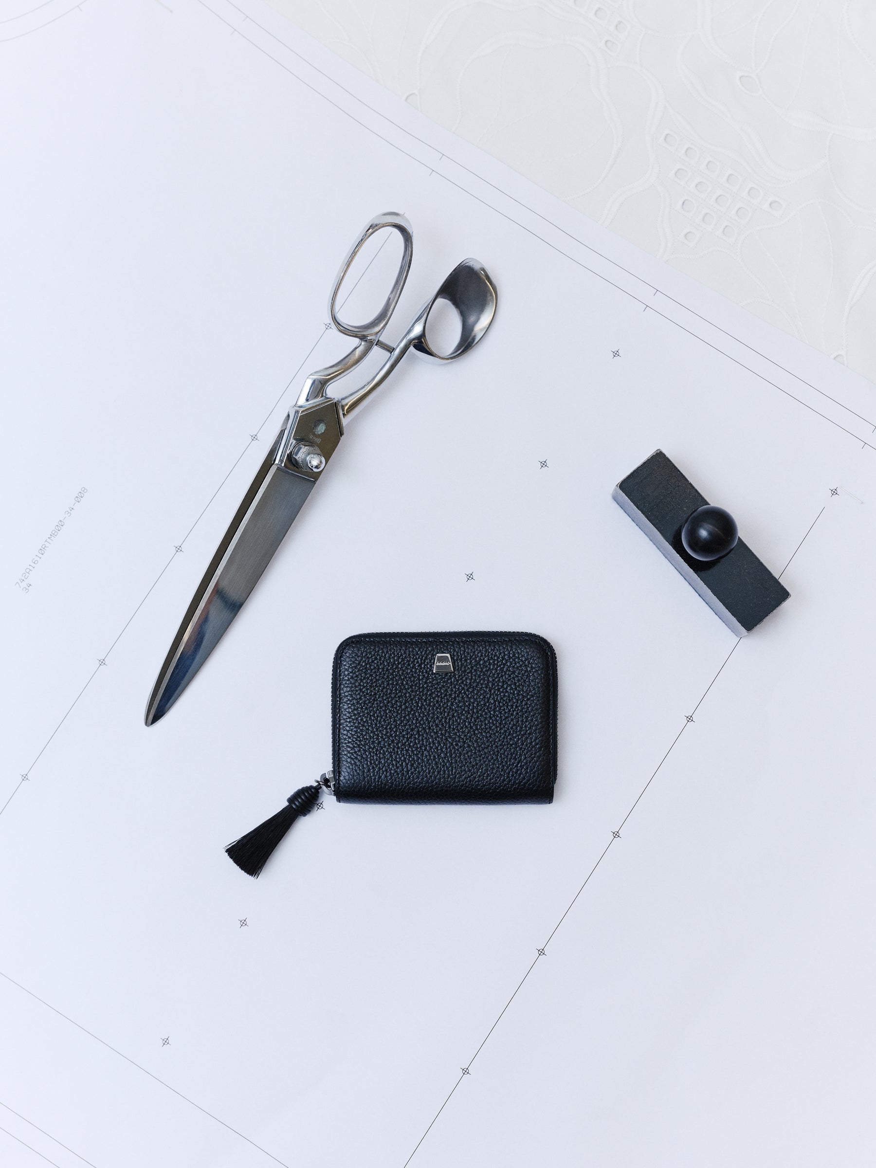 Vom Schnittmuster bis zur Anouk Trapezoid Clutch verbinden sich Geometrie und Handwerk – jede Silhouette geprägt von derselben architektonischen Klarheit, die Akris definiert.