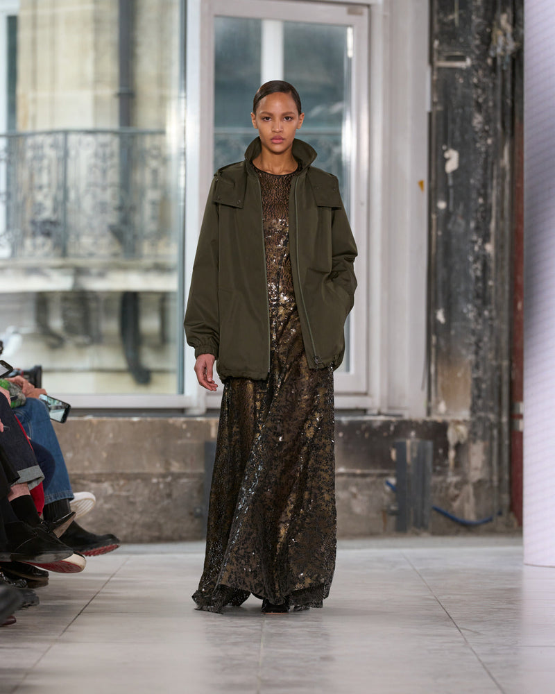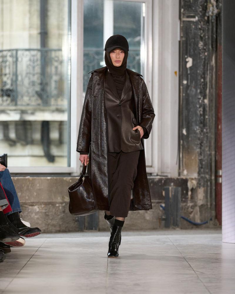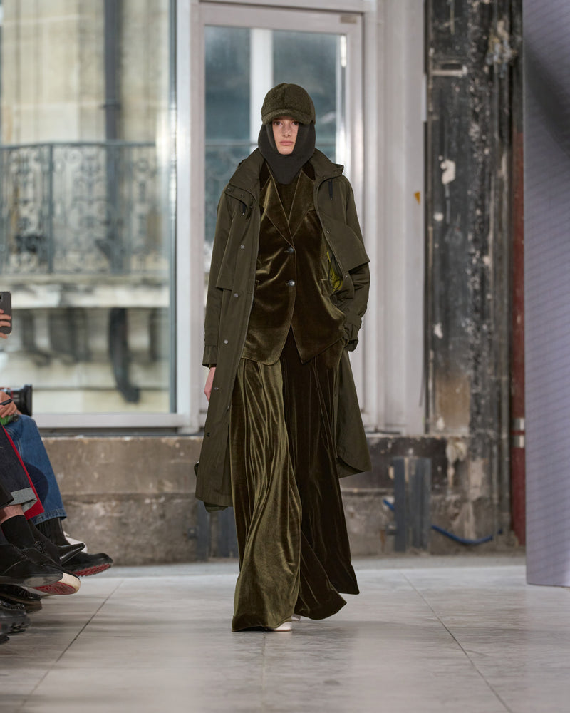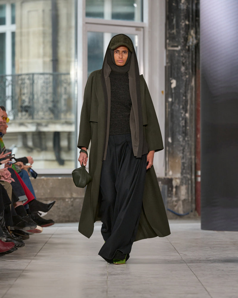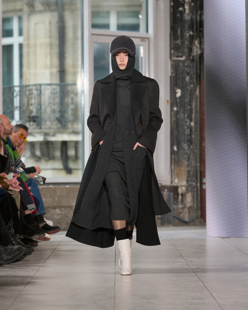 We thought about women, their multifaceted life, and garments for living in. Arranged as mood, need, activity change. Transformation. Hybridization. A coat can be a gilet and jacket. A trench becomes a dress and a skirt. A skirt is indeed a pant.