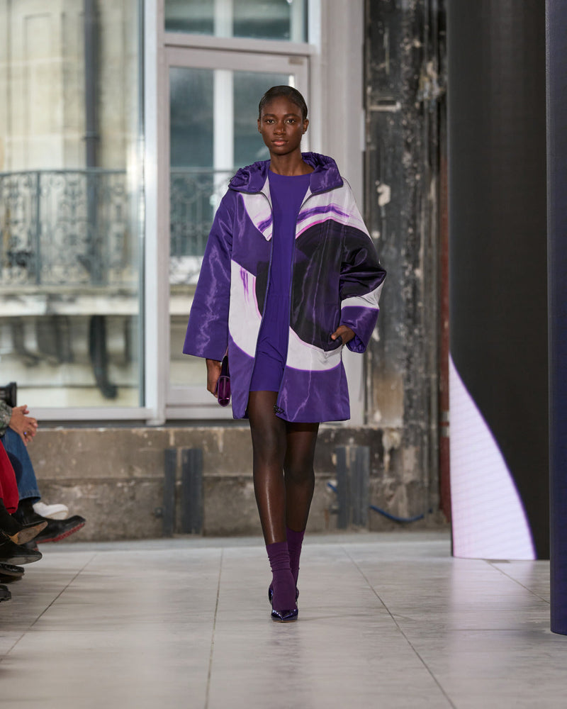 Colors of dark dominate the palette, together with those of light: black, mocca, kale green, and deep purple. Occasionally shot through with tones of ambra, magenta, peridot, and pure ecru. Luminous, sensuous, warm. Light in an otherly sombre world.